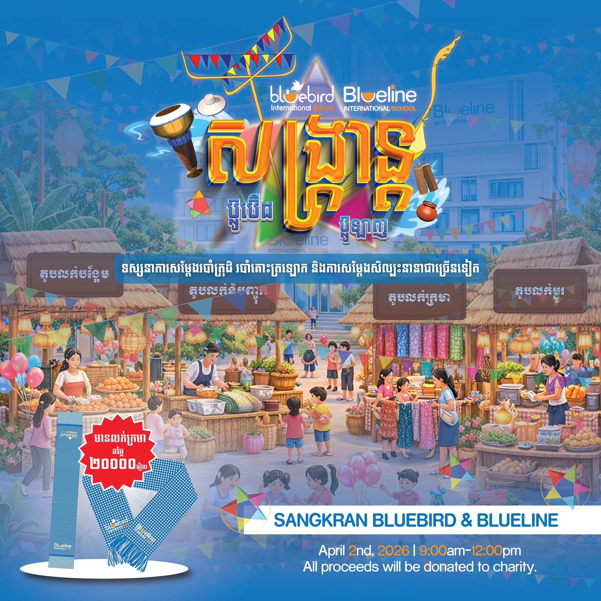 សាលាអន្តរជាតិប៊្លូប៊ើដ និងប៊្លូឡាញមានកិត្តិយសជូនដំណឹងដល់លោក លោកស្រីជាអាណាព្យាបាលសិស្សទាំងអស់ឱ្យបានជ្រាបថា៖ ដើម្បីអបអរសាទរពិធីបុណ្យចូលឆ្នាំថ្មី ប្រពៃណីជាតិខ្មែរដែលនឹងឈានចូលមកក្នុងពេលខាងមុខនេះ សាលានឹងរៀបចំកម្មវិធីសង្ក្រាន្តប៊្លូប៊ើដនិងប៊្លូឡាញ ដែលនឹងប្រព្រឹត្តិទៅ១ថ្ងៃពេញ នាថ្ងៃទី០២ ខែមេសា ឆ្នាំ២០២៦។ អនុញ្ញាតសូមគោរពអញ្ជើញលោក លោកស្រីជាអាណាព្យាបាលសិស្សទាំងអស់ចូលរួមដើម្បីញ៉ាំងឲ្យកម្មវិធីរឹតតែឱឡារិក។